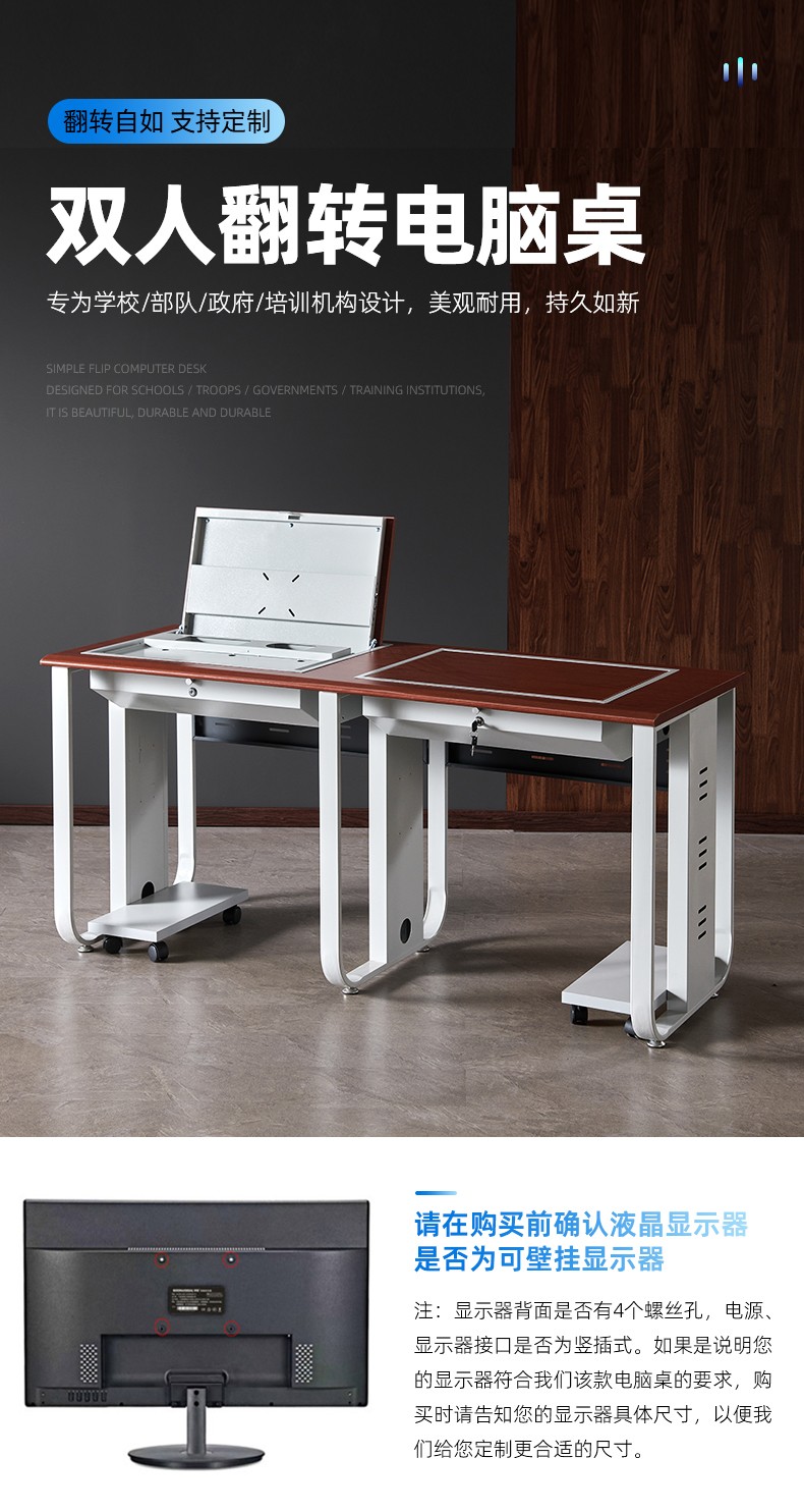 老式腿翻轉電腦桌二人位